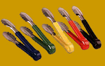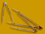 < A basic fecal tong set, stainless steel, 6-, 8-, and 10-inch lengths.